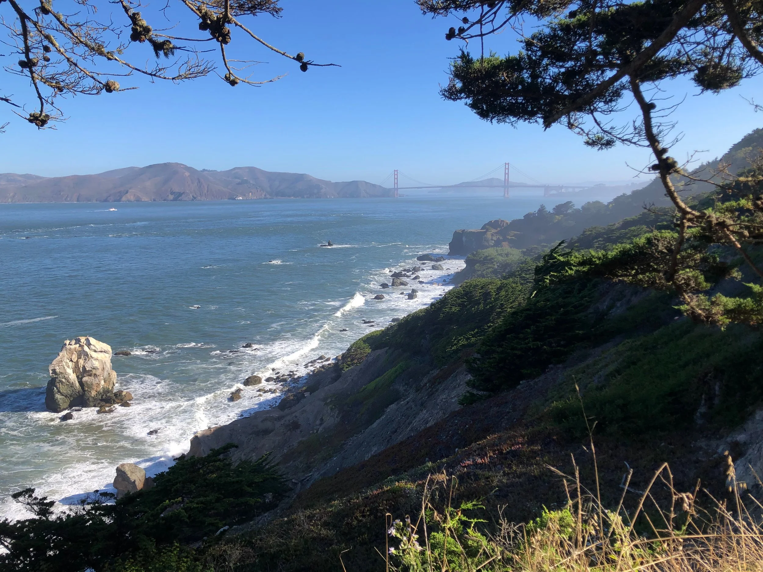 After visiting Sutro Baths, the hike continues along the picturesque Coastal Trail, perched atop the stunning Pacific coastline. This trail offers many amazing views, but also leads to hidden gems along the way. The trail goes along cypress as well as eucalyptus trees and grassy areas. There are several overlooks that provide a great view of the coast and the Golden Gate Bridge. It can get busy especially during the weekends and in summer as it is a popular trail for both tourists and residents!