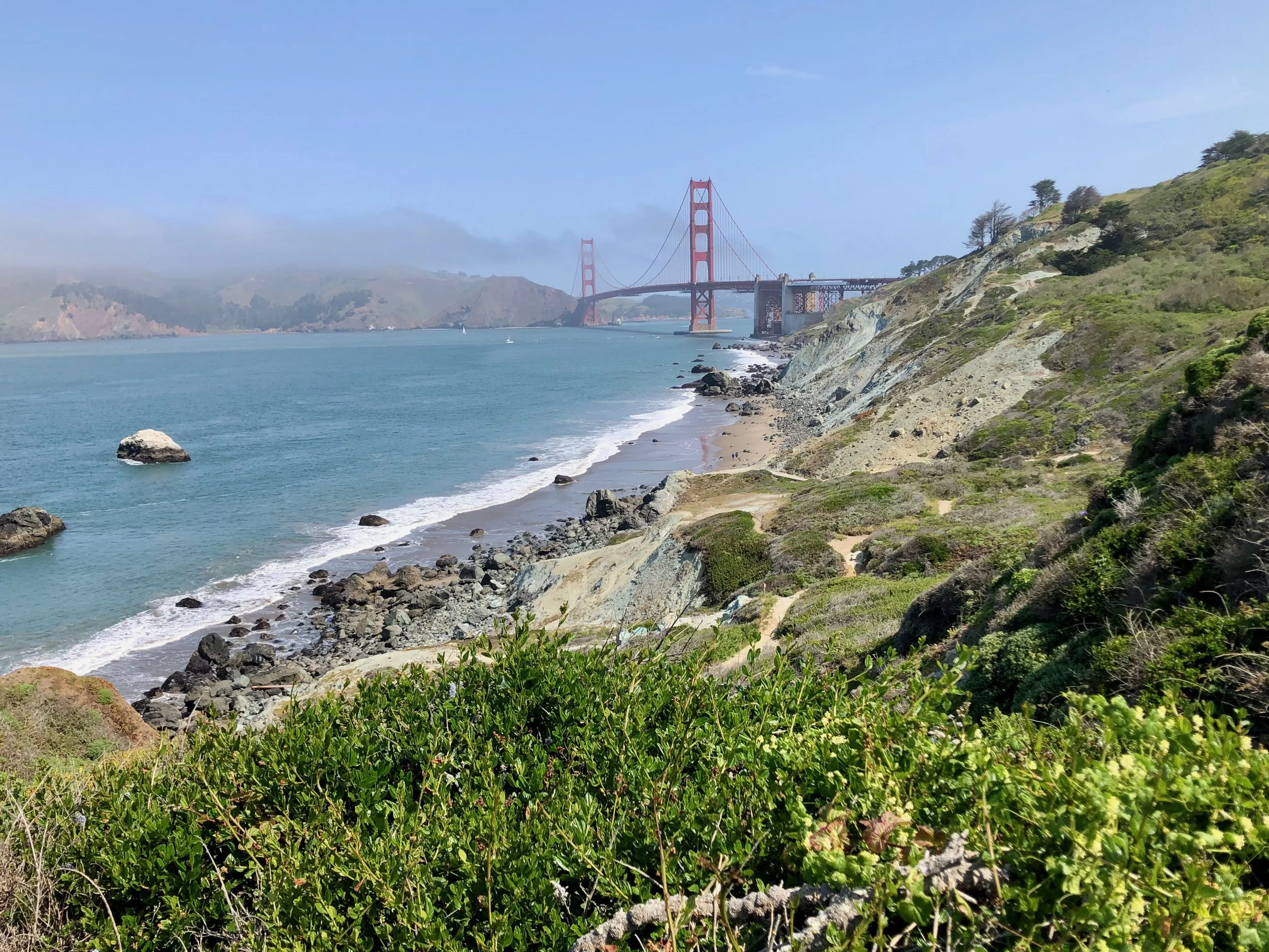 Amazing view toward the Golden Gate Bridge on the way between China Beach and Baker Beach (only accessible during very low tide).