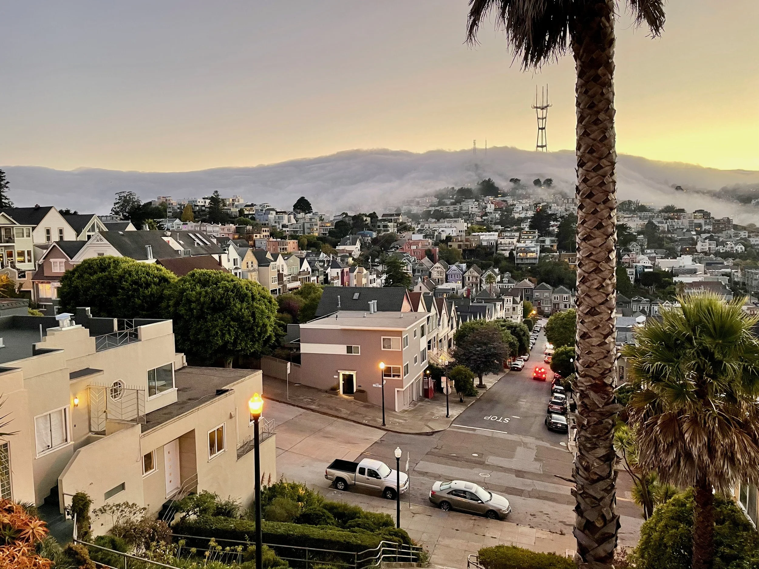 View toward Twin Peaks from Noe Valley: If the fog isn't too dominant, it can create a captivating spectacle, dancing around the hills. If you can't see the tower at all, you probably won't see much from the viewpoint.