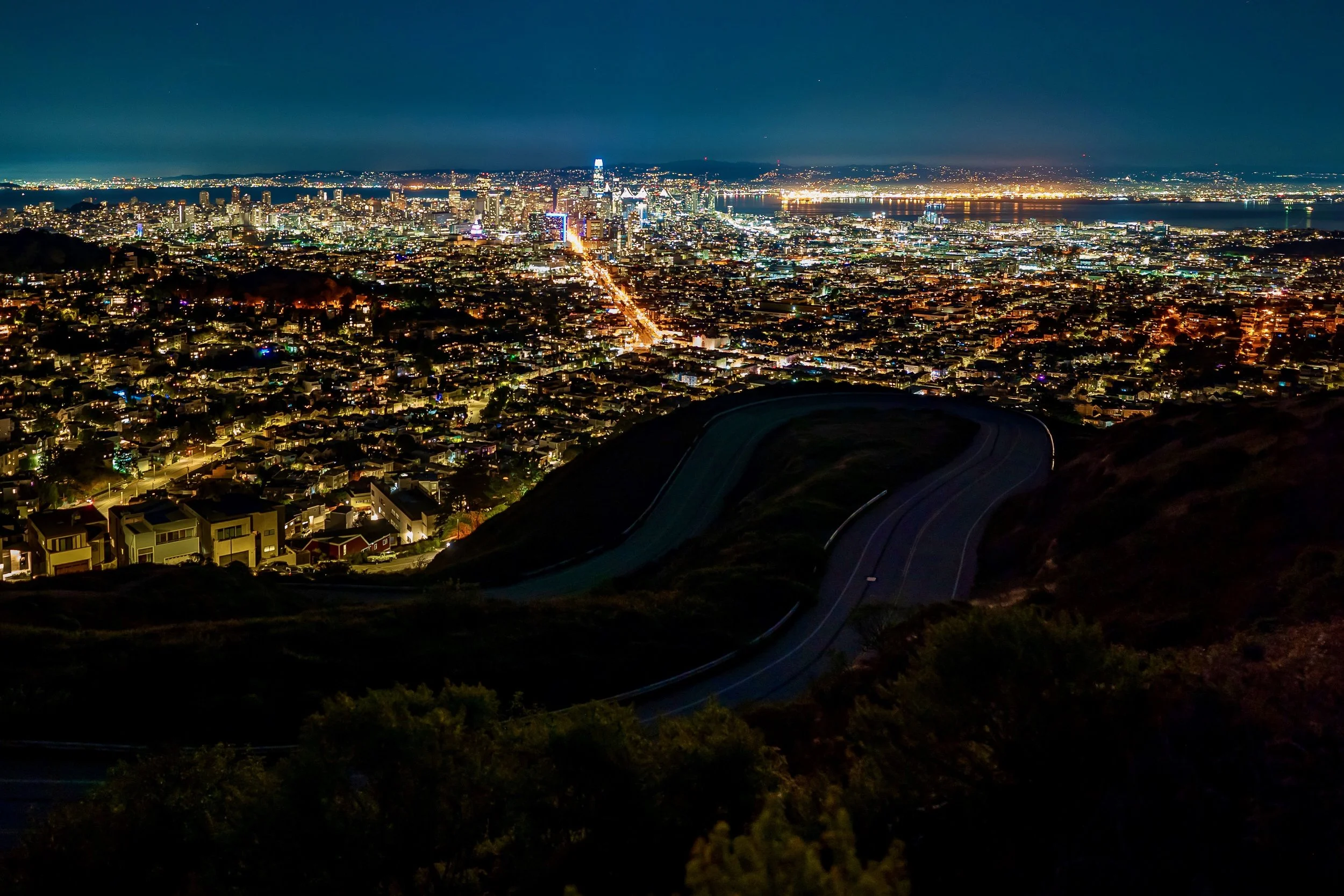 Twin Peaks Viewpoint at night: You can clearly see the bright Market Street from a distance.