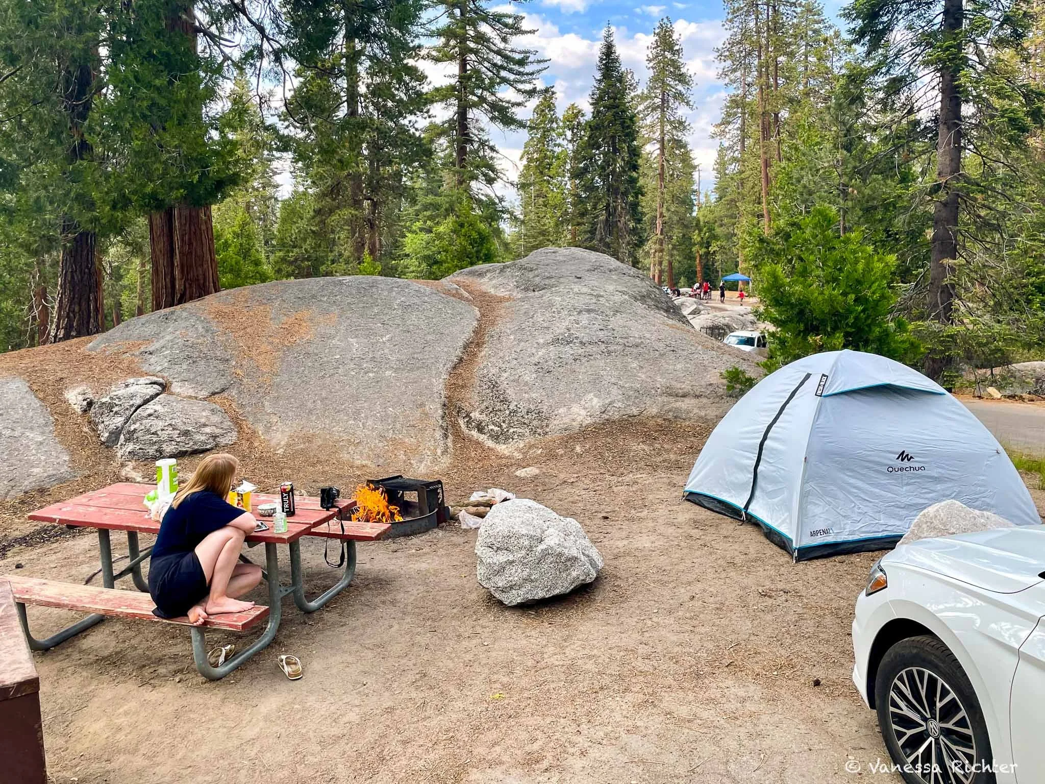 In my humble opinion, this is the best way to explore the park. You'll be immersed in the beautiful Sierra Nevada, closest to the trails, and in my view, it doesn’t get any better than having a campfire going while the sun sets among the trees.