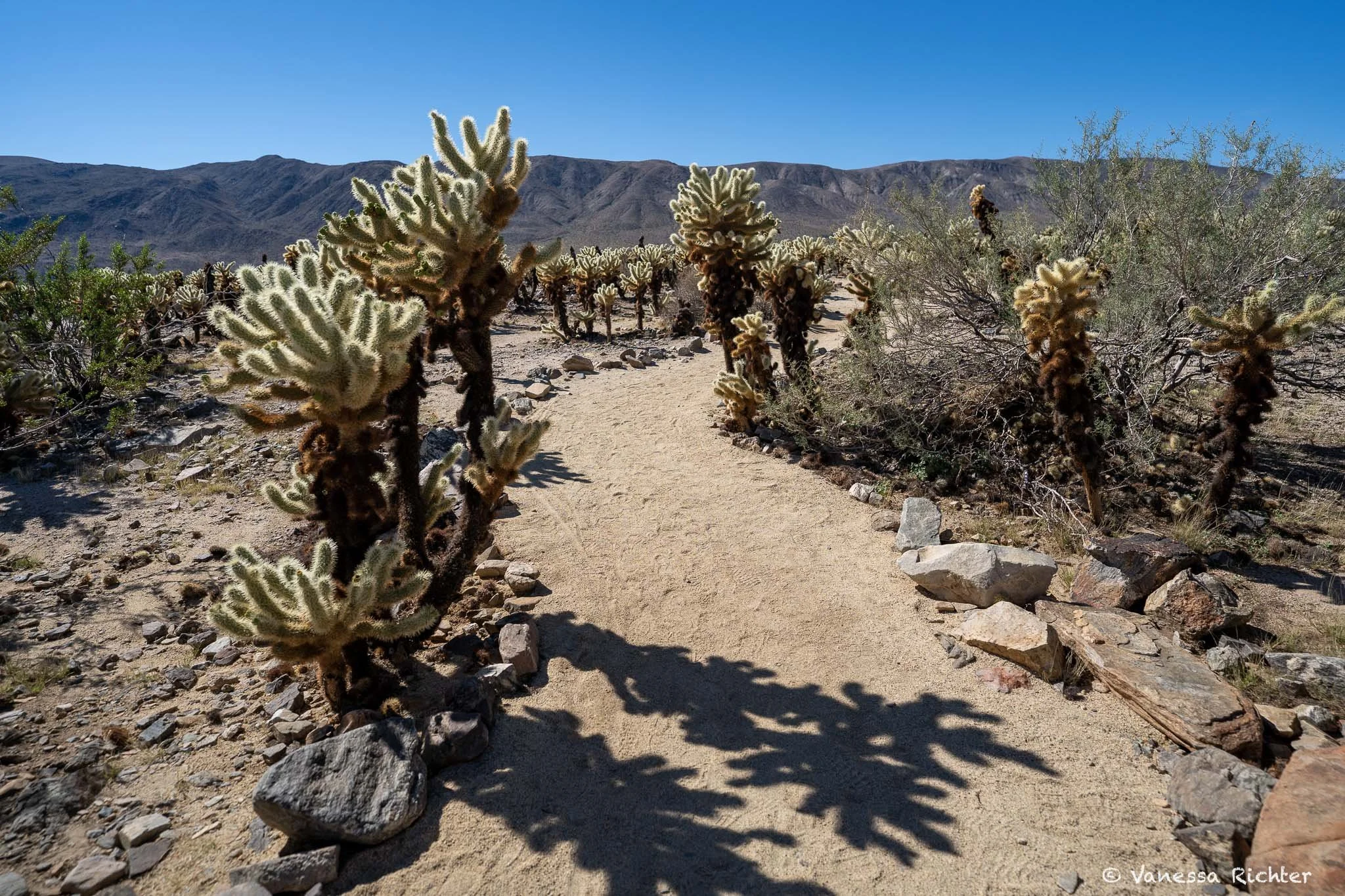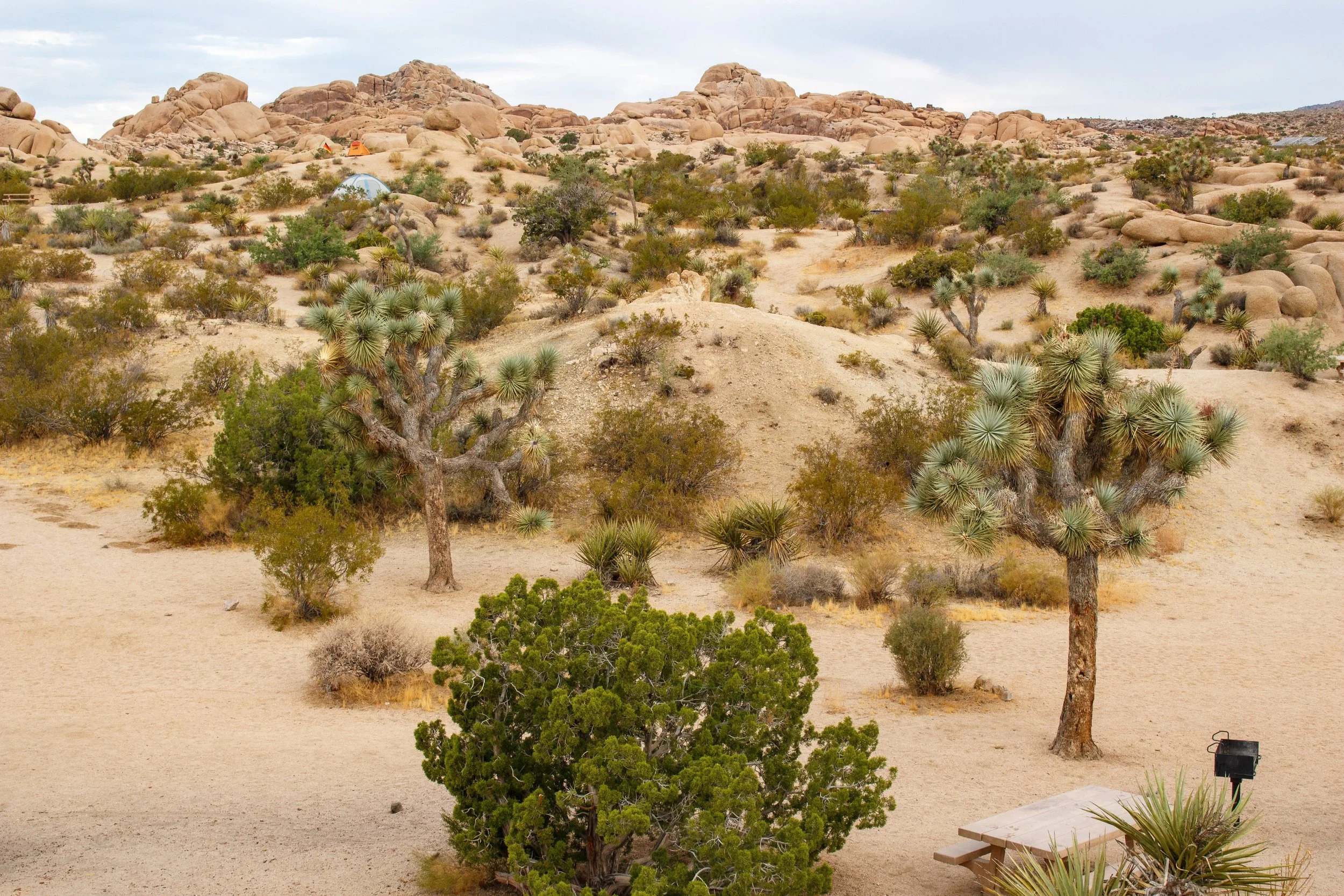 Below 3,000 feet (910 m), the Colorado Desert spreads out in the eastern part of Joshua Tree National Park. This area is different regarding vegetation from the more western parts encompassing the Mojave Desert. Here, you won’t find many Joshua Trees, and the vegetation appears much sparser. For example, you’ll find creosote bush scrub, ocotillo, or cholla cactus (including the Cholla Cactus Garden, which has — as the name suggests — a particularly dense population of these cacti). The Coachella Valley (famous for its Coachella Valley Music and Arts Festival) is located within the Colorado Desert too (southeastern side of the park), encompassing desert dunes and sandy soil grasslands.