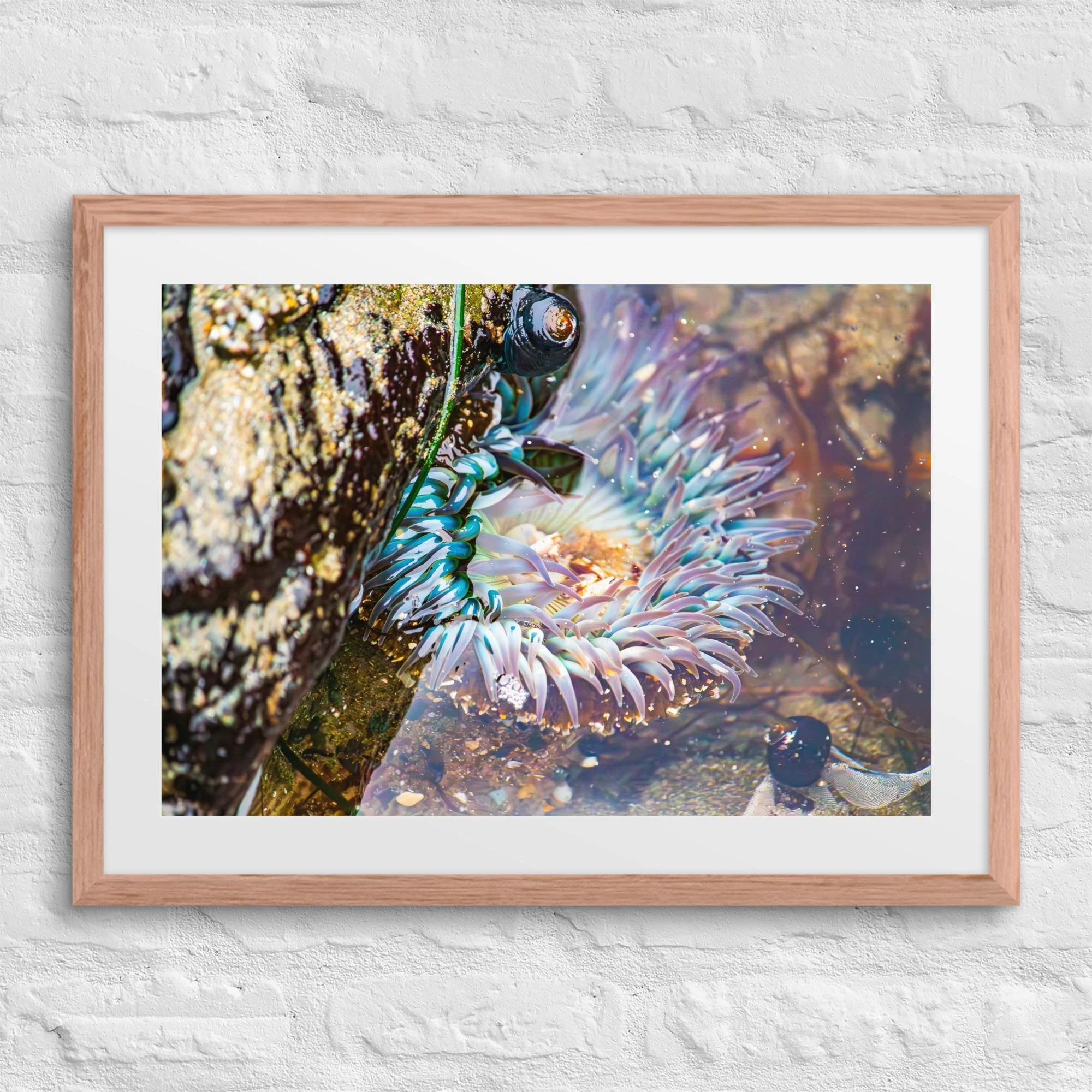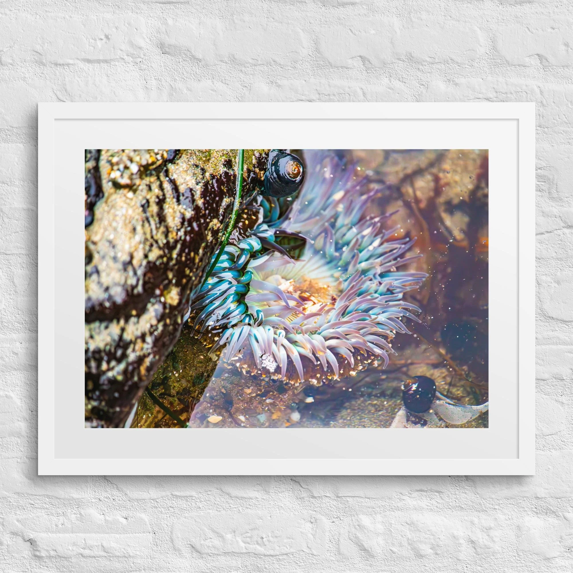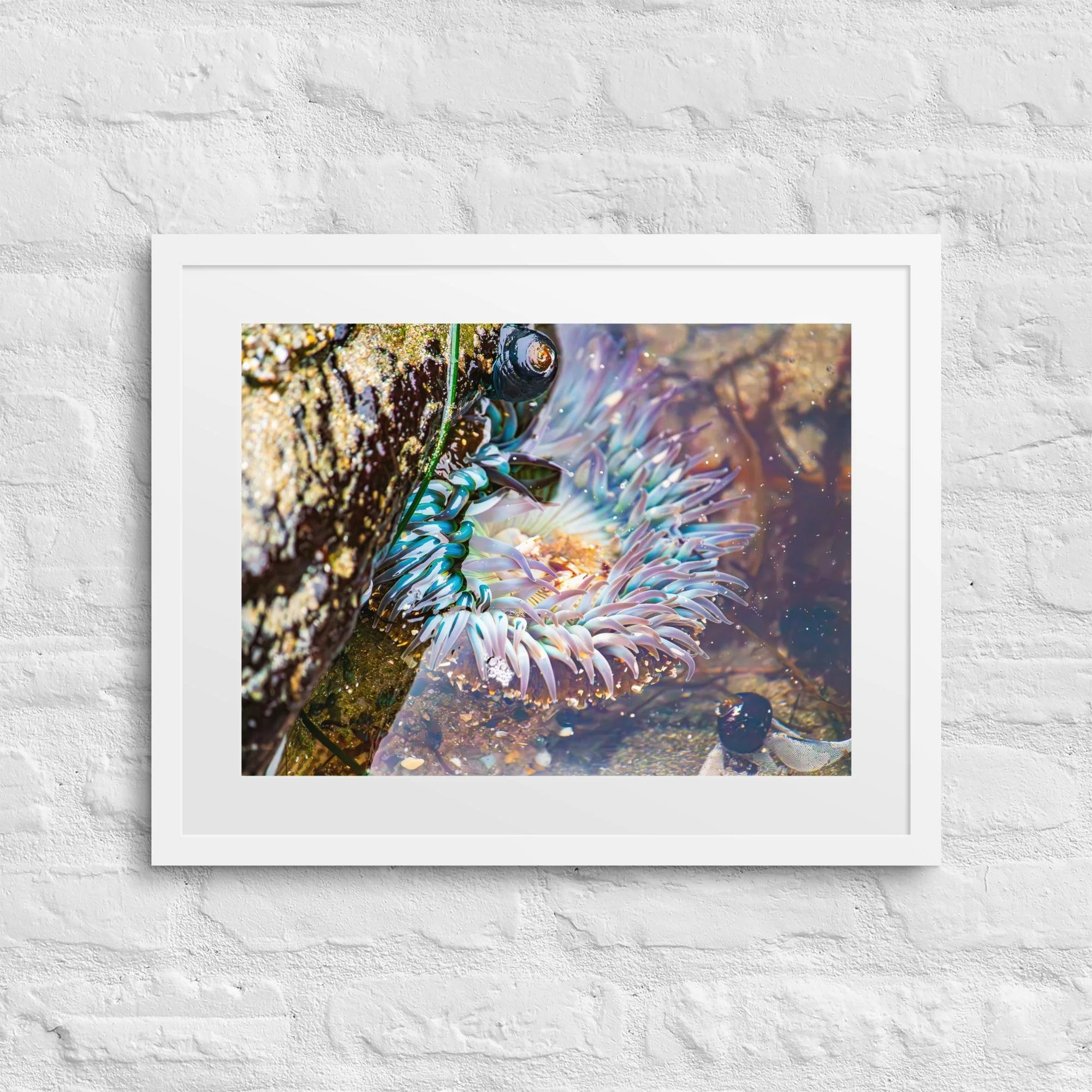 Bring the serene beauty of the Pacific coast into your home with this framed print featuring a vibrant starburst anemone (Anthopleura sola). Captured in its natural habitat along the Pacific coast, this nature photography piece highlights the intricate colors and textures of marine life, creating a calming and inspiring addition to any space. Perfect for nature lovers, ocean enthusiasts, or anyone looking to add a splash of coastal beauty to their walls. Printed on high quality thick matte paper.